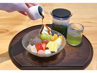 今回の記念メニュー「銀座立田野130周年あんみつ」は、季節に合わせたフルーツと、ソフトクリームを添えた特製クリームあんみつとして提供する。イートインで1日20食限定。価格は1,300円(煎茶、玄米茶、ほうじ茶から選べるお茶付き)。