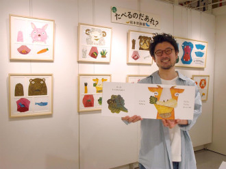同展では、絵本の中から印象的な10場面をパネルにして展示。併せて、同書サイン本(1,760円、数量限定)や、これまでに手がけた絵本、挿絵本など計13タイトルの書籍を展示販売する。
